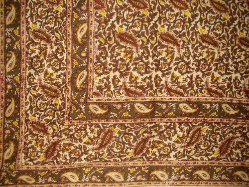 JAIPUR TAPESTRY ~ Gorgeous Jaipur Vine Paisley tapestry made of 100% power-loomed cotton offering a tight, durable weave. Measures approximately 108 x 90 inches. Background is cream with the dominate color being olive/brown tones. They are colorfast and can be machine washed on cool/gentle and tumble dried. Jaipur has been one of the leading centers of hand block printed textiles for more than 500 years. The opulent cultural heritage of the city is distinctly evident even today in its exquisite textile prints. Elegant as they are, the prints of Jaipur are directly influenced by the royalty who at one time formed the niche clientele. A harmonious blend of a variety of elaborate yet sophisticated designs in delicate shades on a single piece of cloth place the prints in a class of their own. Today, Jaipur prints are internationally recognized for their ethnic designs on pure cotton using natural and vegetable based dyes. This lovely Jaipur tapestry will accommodate many styles of decor needs. Great quality with endless versatility. Your Jaipur tapestry can be used for: ~FURNITURE COVER~BEDSPREAD~~TABLECLOTH~BEACH BLANKET~ ~ROOM DIVIDER~A GREAT AFFORDABLE GIFT~~HANG THEM ON YOUR WALL OR CEILING~! We hope to inspire your imagination & creativity~:-)