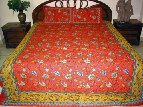 3pc Cinnabar Red Floral Print Bedsheet Indian Designer Cotton Bedspreads Throw Review