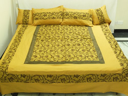 Home Furnishing Silk bed sheet Bedspread with Pillow & Cushion Covers Review