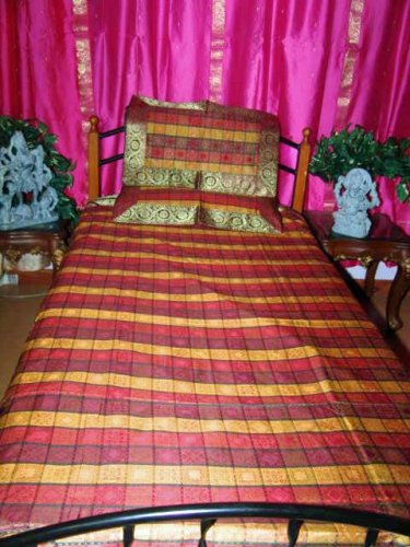 - Gorgeous banarasi silks woven by mastercraftmen of Varanasi are used to make this bedding set.Zari borders add a classic finishing touch that not only add to the bedspread's elegance but also give it a royal feel.